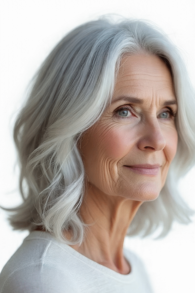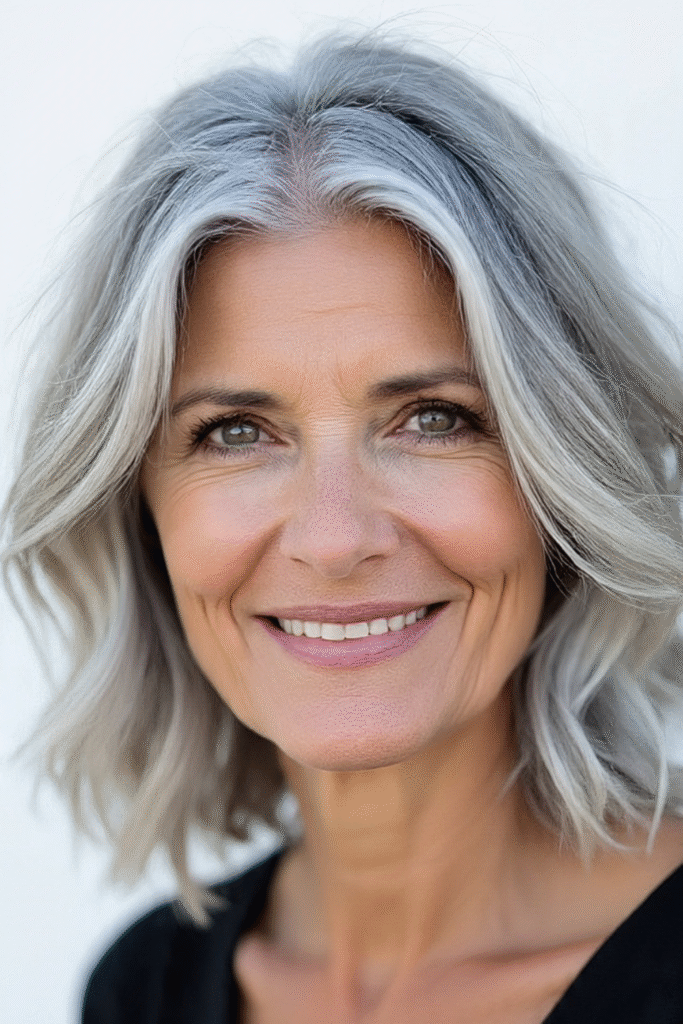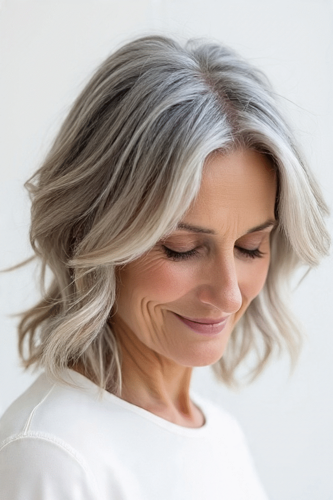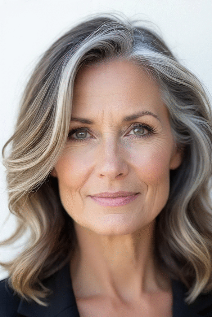 Les dégradés aériens complètent la beauté naturelle des tons gris, créant un look moderne et sans effort qui célèbre plutôt que dissimule le processus de vieillissement.