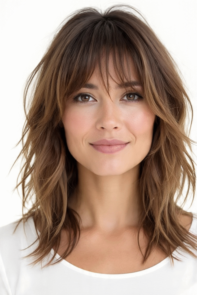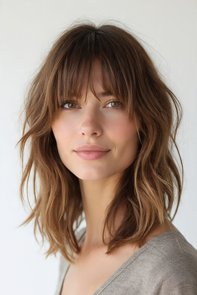 17. Shaggy Lob avec Frange Rideau Longue pour Visages Ronds