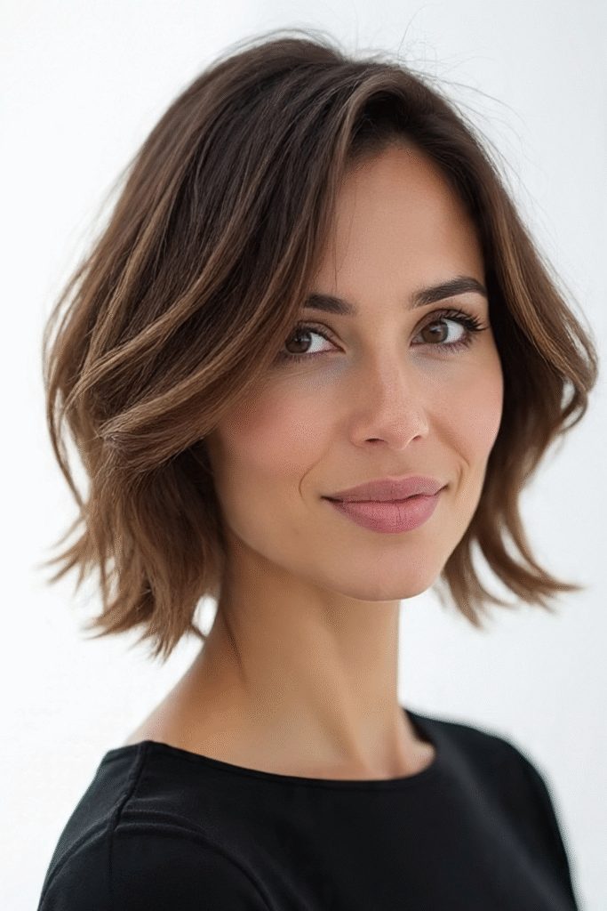 25. Shaggy Lob pour Cheveux Fins Foncés